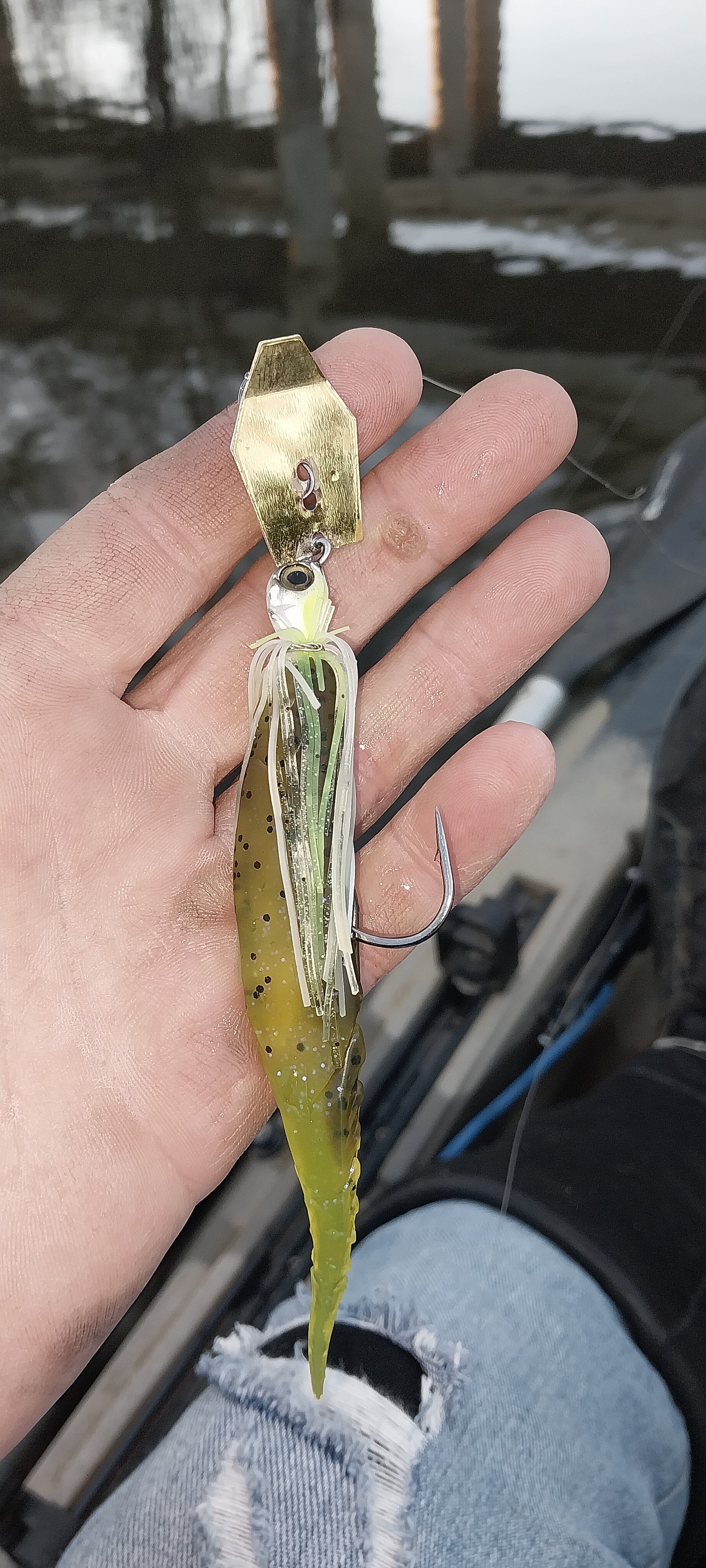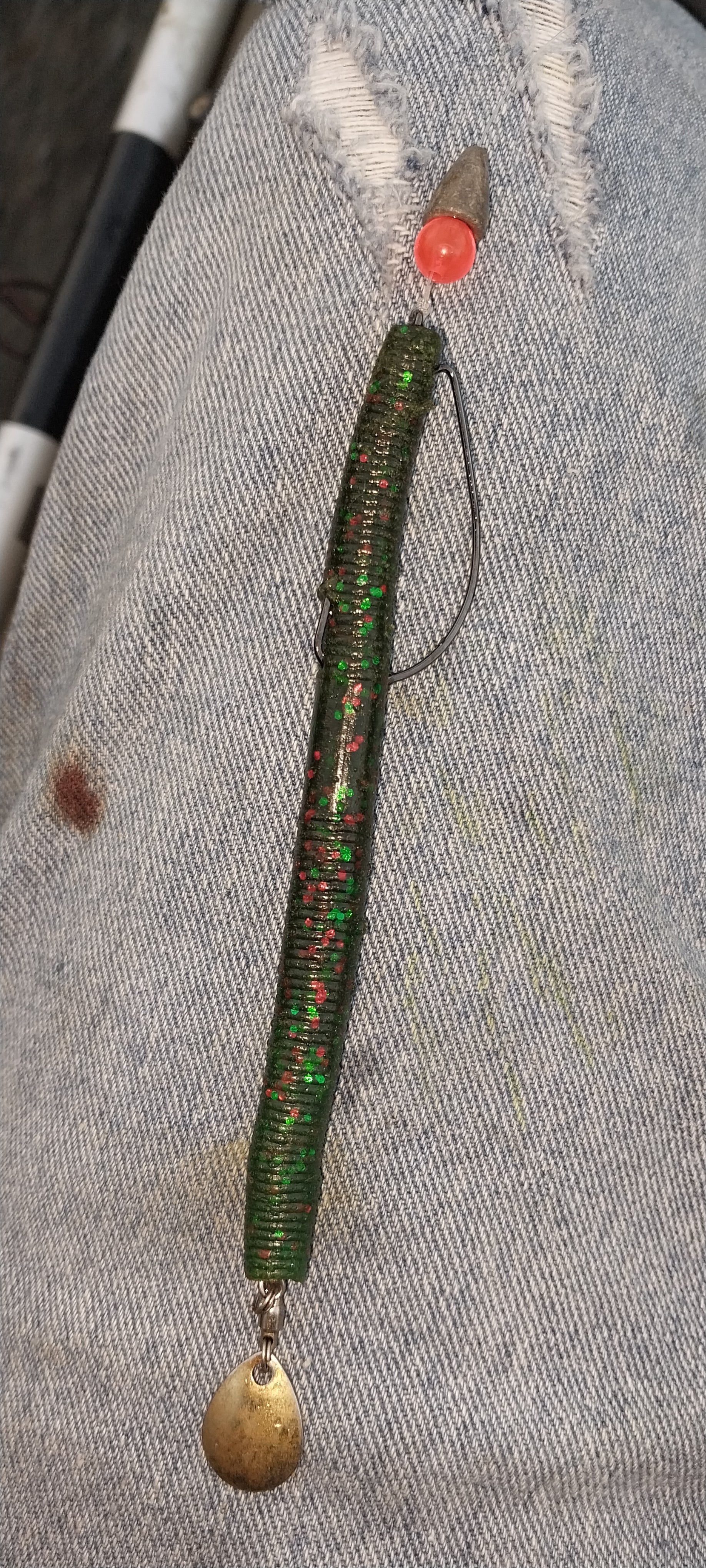 Caught em good on the Oconee river today.. and this combo on my chatterbait had them chomping great.. the chatterspike trailer stays on my chatterbait.(pictured)... Caught 6 or 7 on the chatterbait, and another 7 on the Texas rigged worm with a z-man blade stuck in the worms butt. (Pictured)