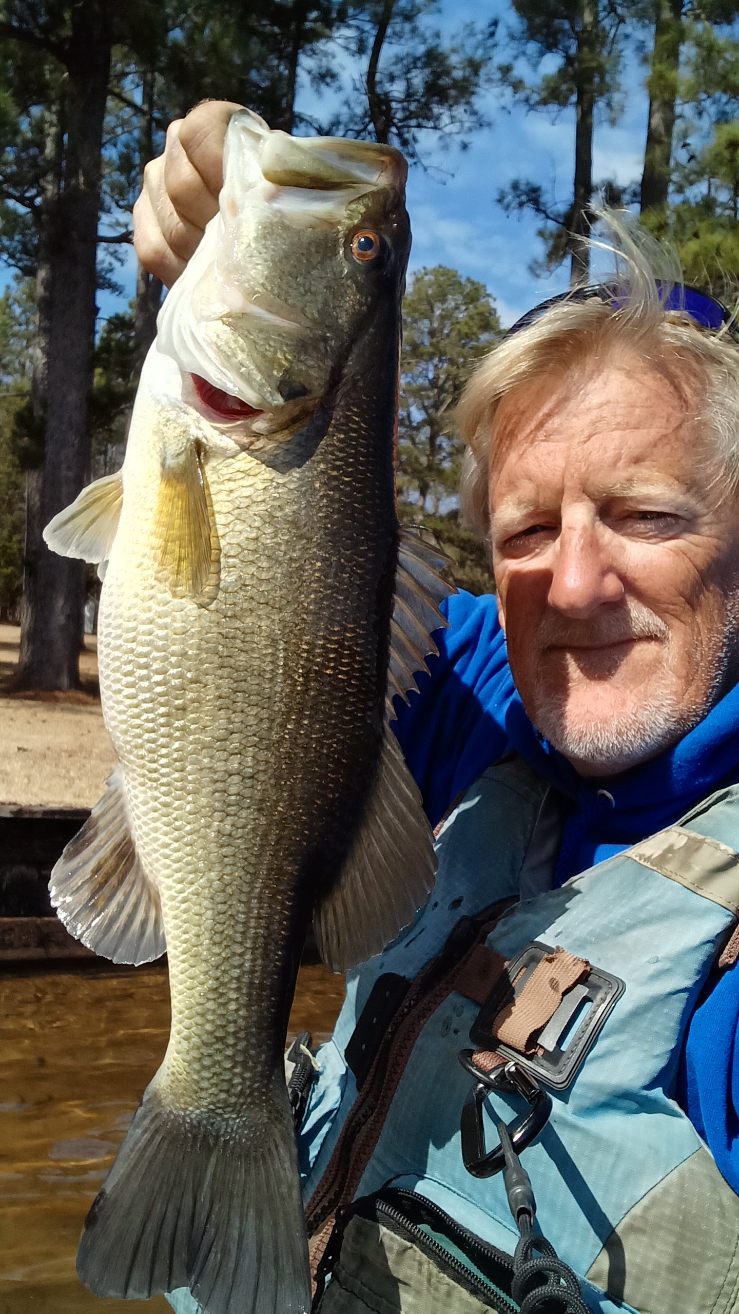 However, the big one, I saw him hit top water under a dock. I pulled out my punch rod and threw a big black and blue craw at him, he hit the second bite and it was the fight of my life! I’ve caught bigger but he was definitely the biggest fighter.