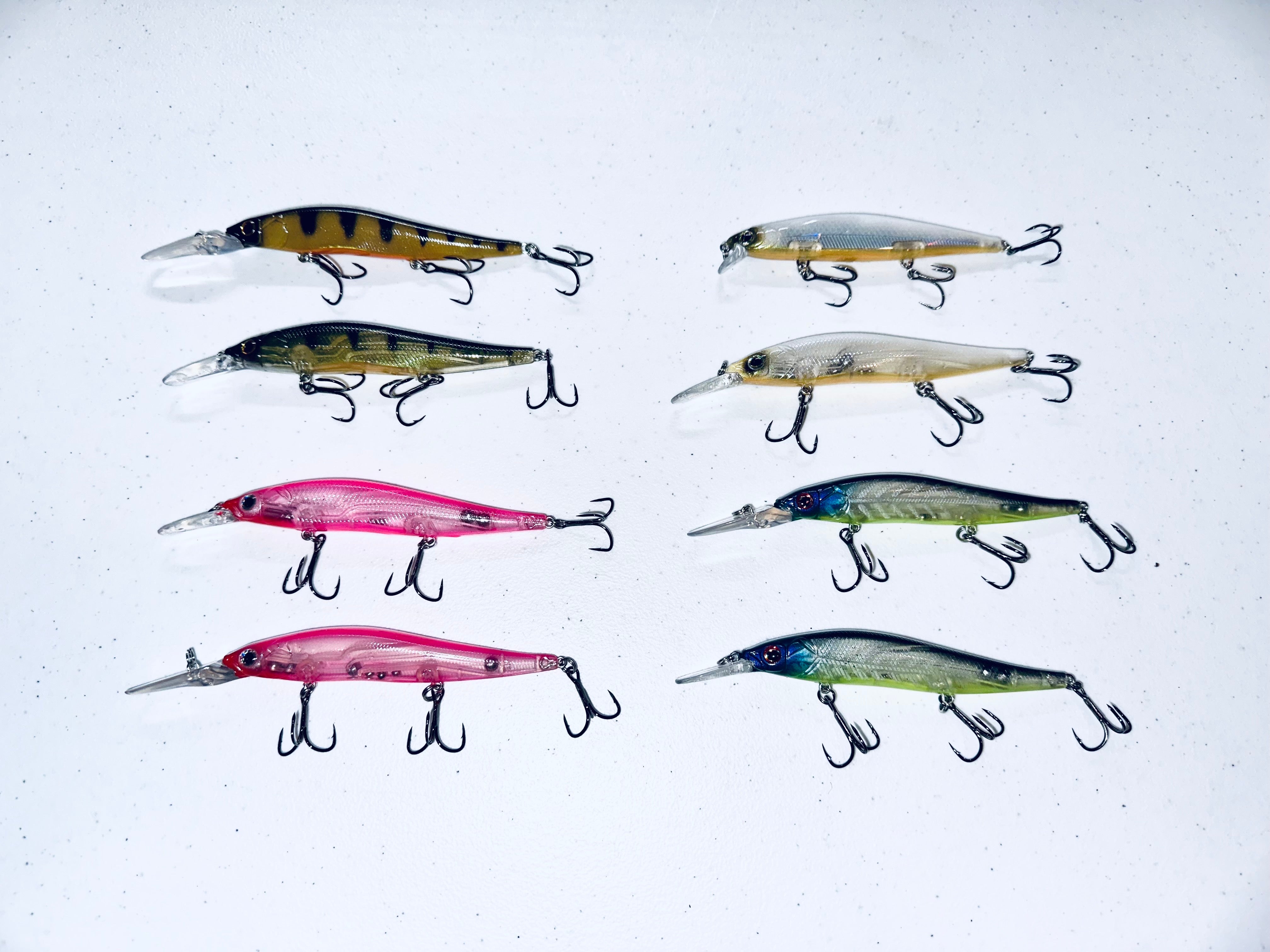 Doc Trez hooked me up and custom painted these jerkbaits for me. He gets the blanks from the manufacture so they’re tuned by the manufacturer and paints the color schemes you want. He also has a couple options for hooks and hardware. He has crankbaits rock crawlers, Megabass….hit him up if you’re interested and don’t want to pay $30 for a Megabass Jerkbait. Thanks Doc!