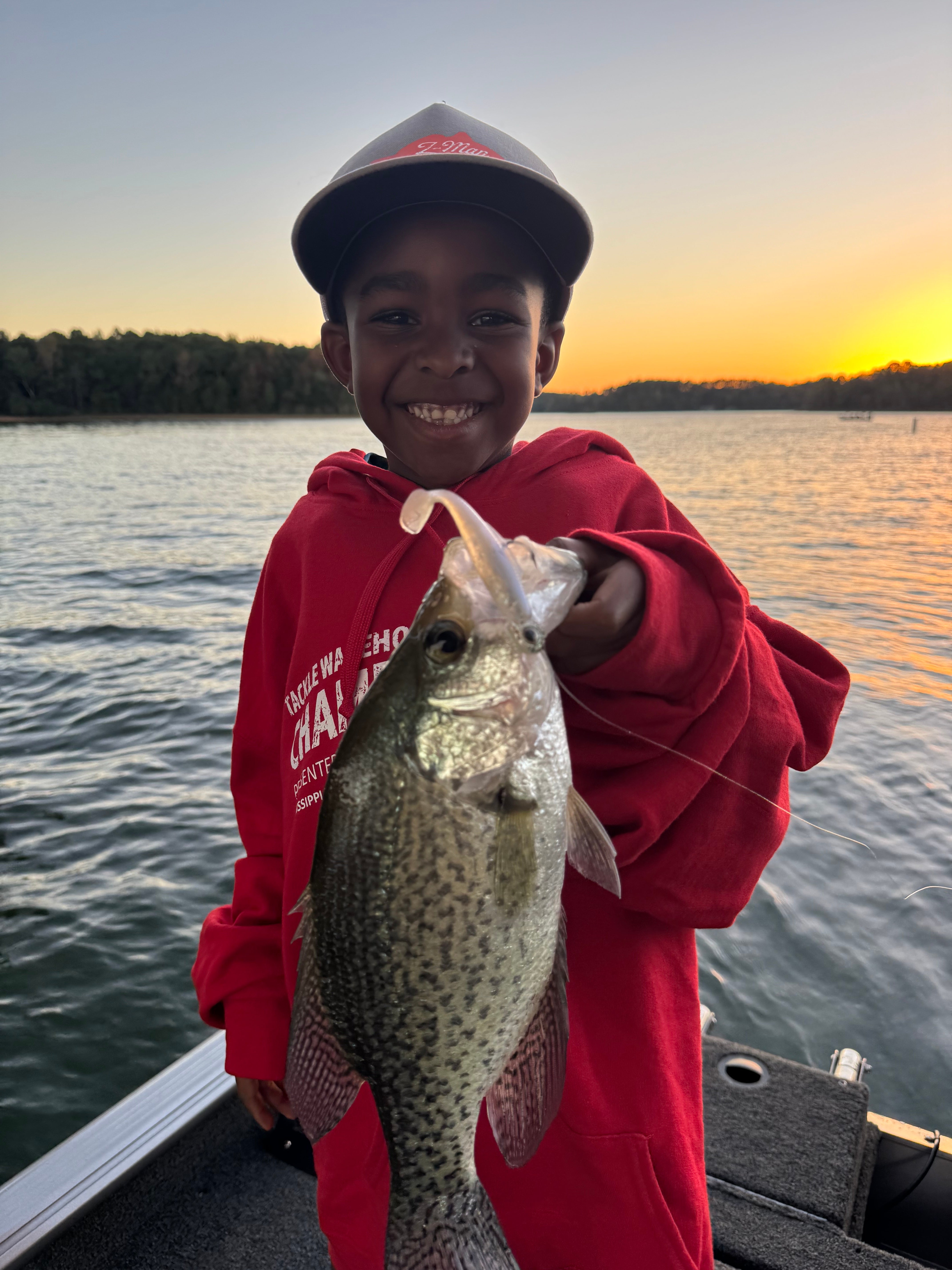 Brooks and I looked for striper today but didn’t find any. We did find this crappie fishing bridges.