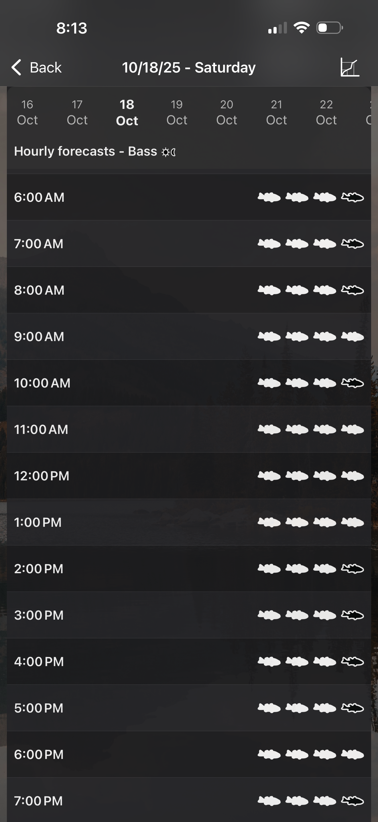 Quick Check In: Day1 of tournament looking good in Anderson SC. A glance at the Solunar. (Hourly is nice)