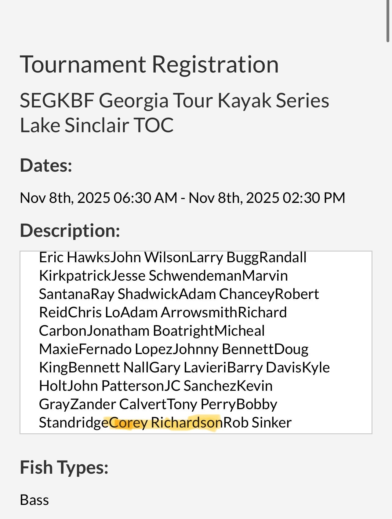 So I qualified for my first tournament of champions with the southeast Georgia kayak bass fishing league. I’m excited. It’s on my home lake.