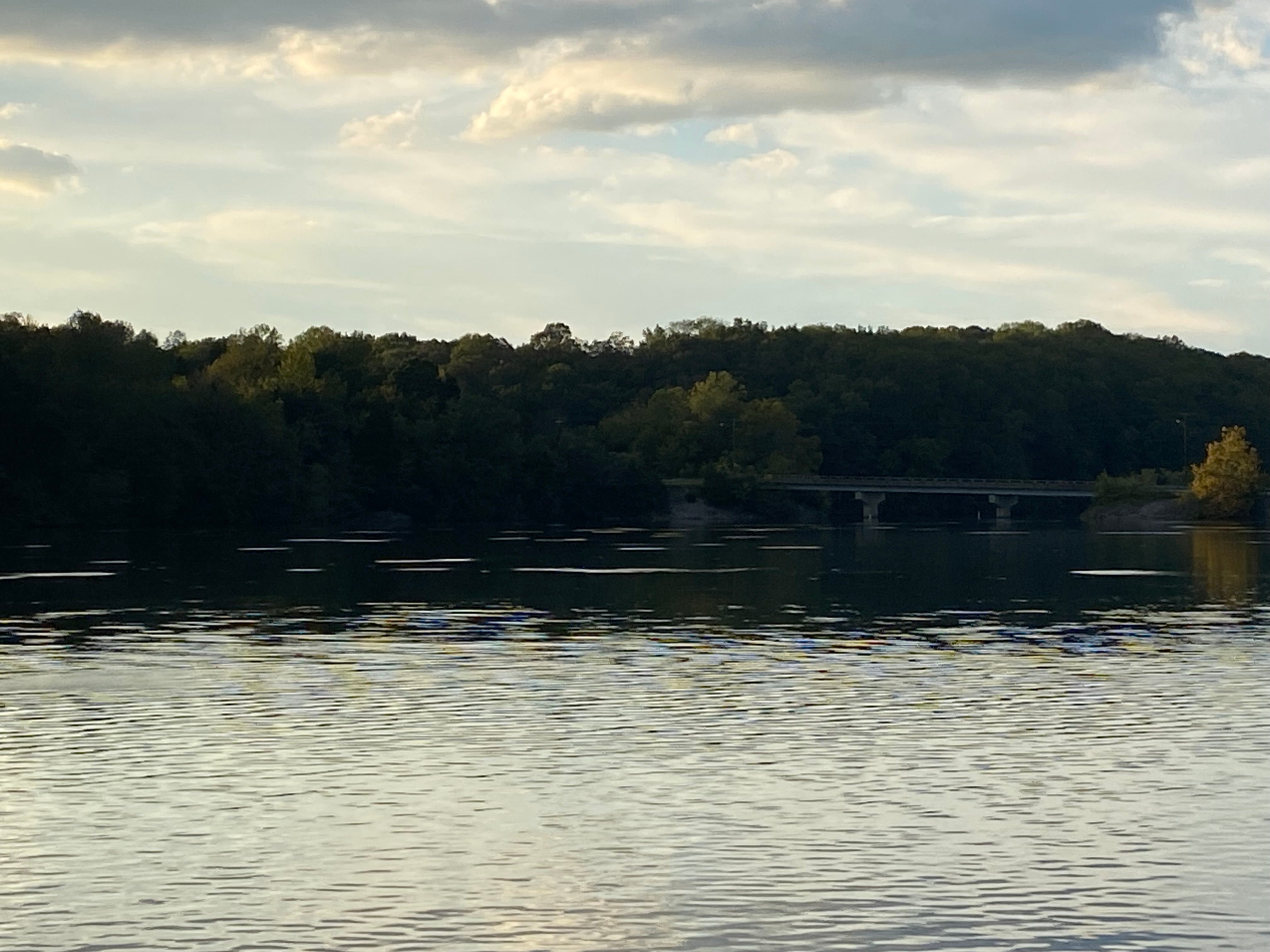 There be days like this… all those disturbances on the water are shad balls in Dry Creek on Tim’s Ford…. I could see shed everywhere on the side imaging, but could not beg a bite. There was nothing hitting the surface and no organized schools of larger fish.