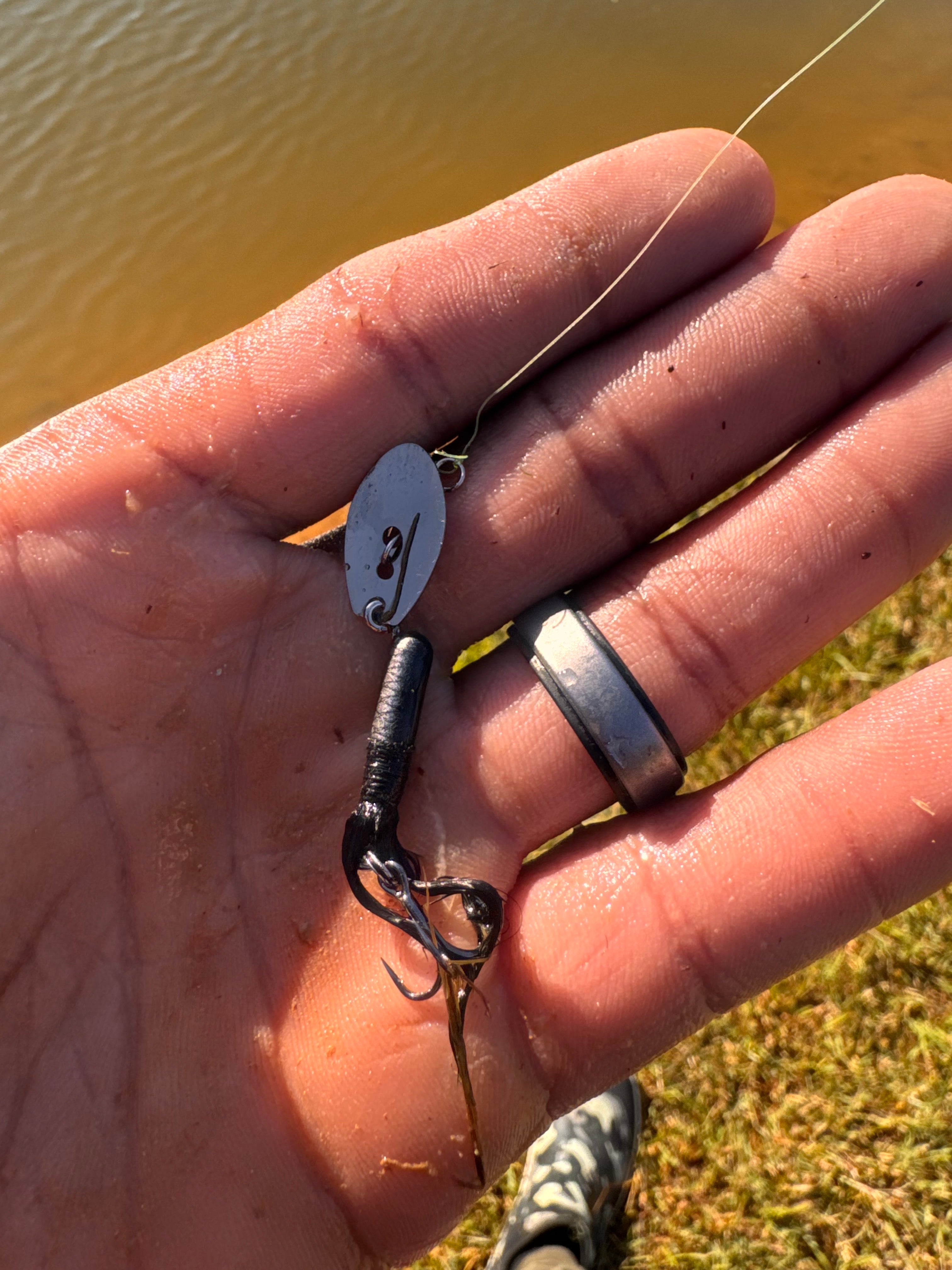 This is the lure tha I caught the 7+ on this weekend 🫣. It’s a 1/16oz bait called a chattertail. It’s not out yet but will be soon. DONT SHOW THIS TO ANYONE OR I COULD GET FORED 😉