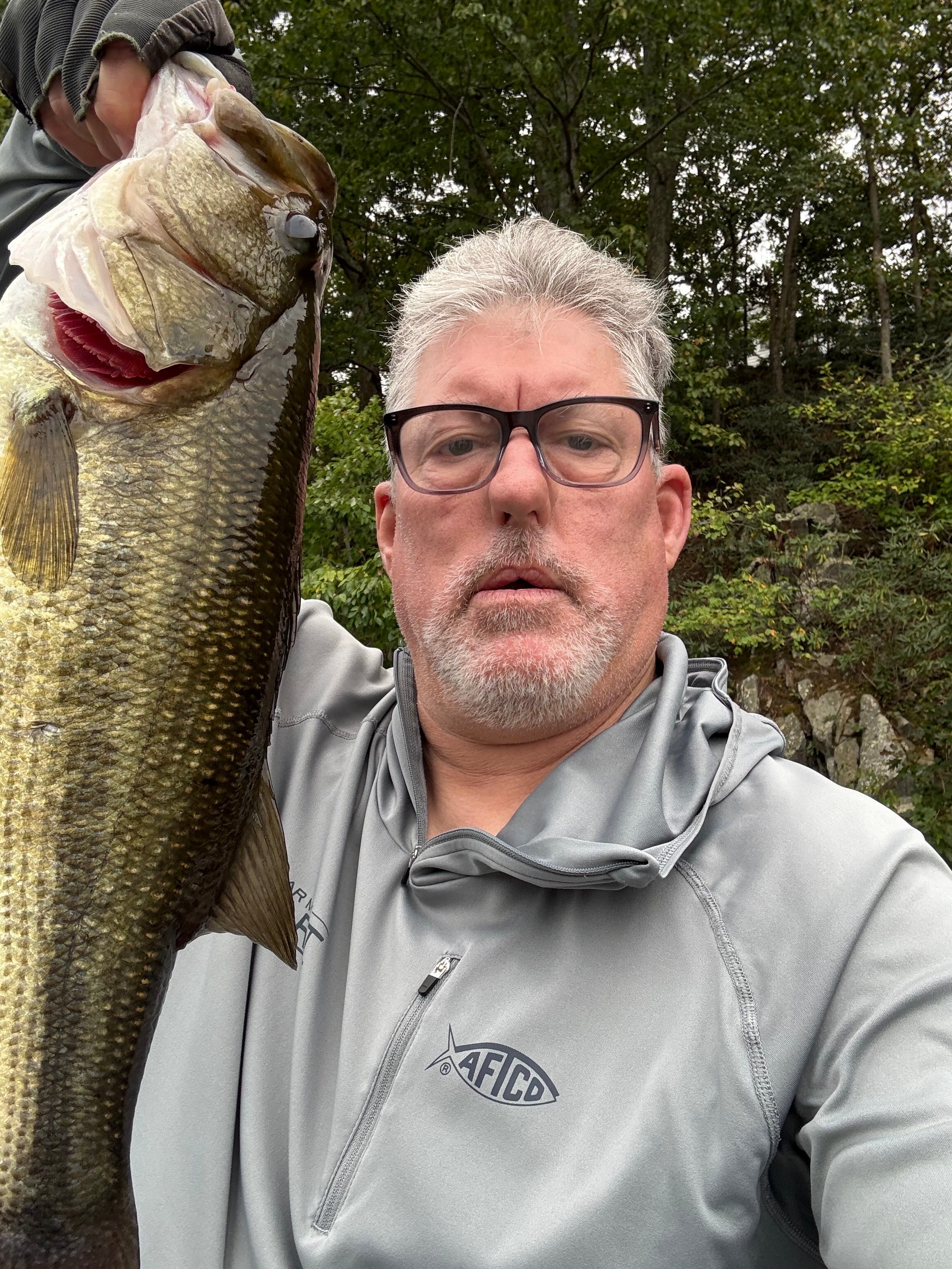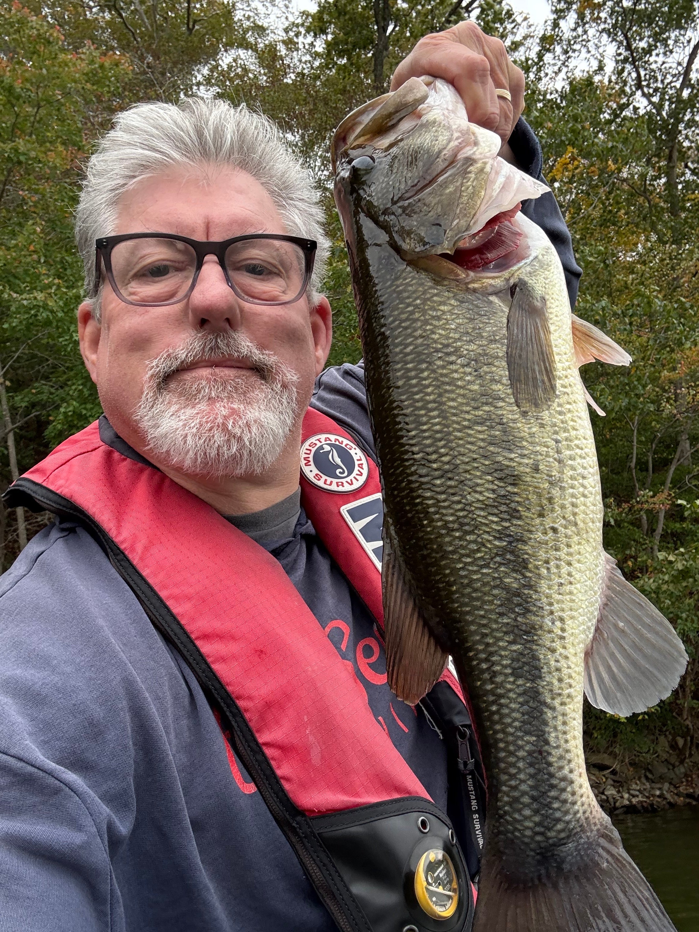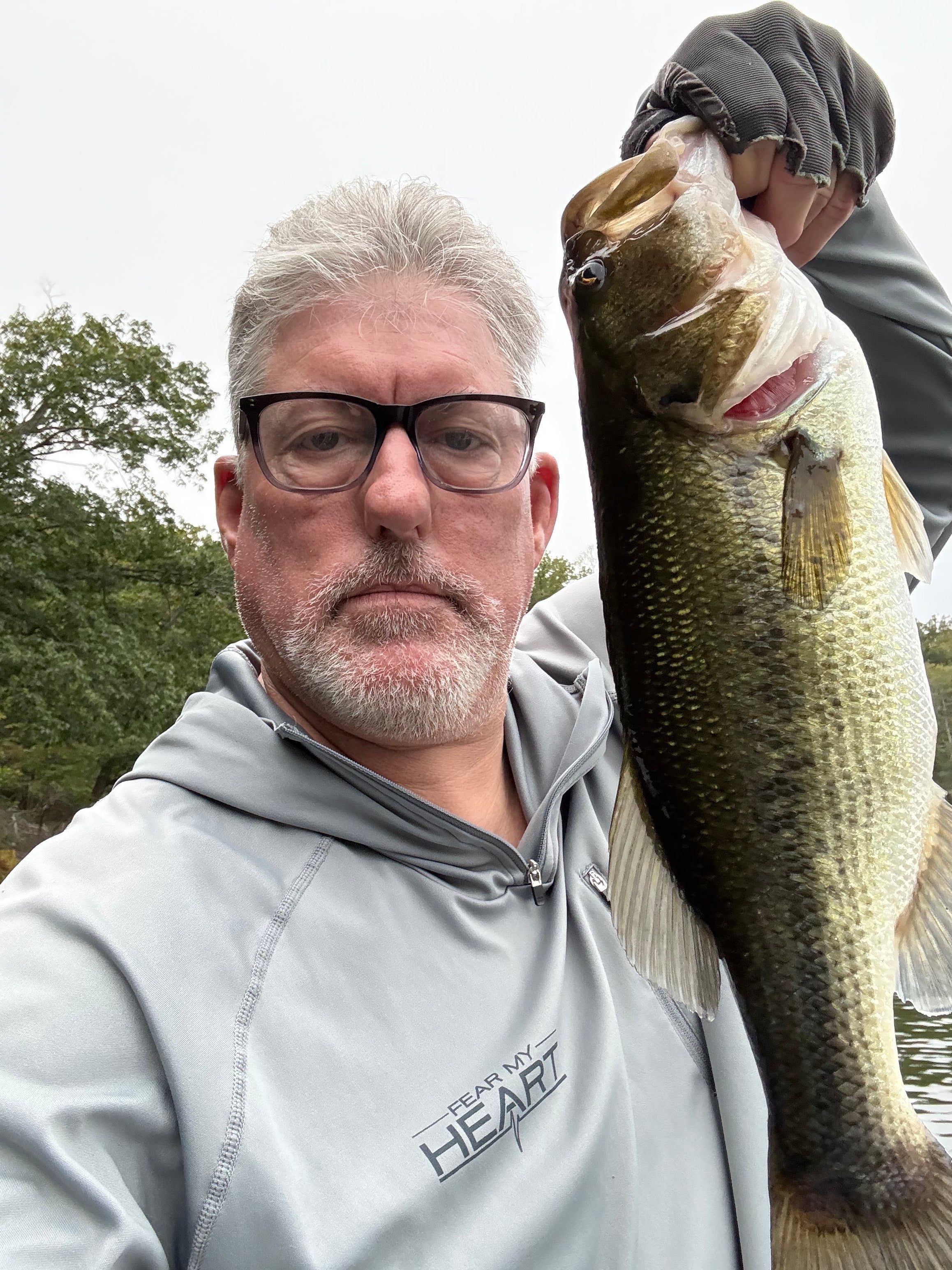 Did some map research and found some rocky bluffs in 20+ feet of stained water. Didn’t let the light rain and 20 mph winds keep me away. Threw a shad colored rock crawler along the rocky bluff 10-12 feet deep in 71 degree water. Rewarded with a 4 pounder and two 3 pounders in less than 3 hours of fishing. Make it simple just listen to B.Lat!!