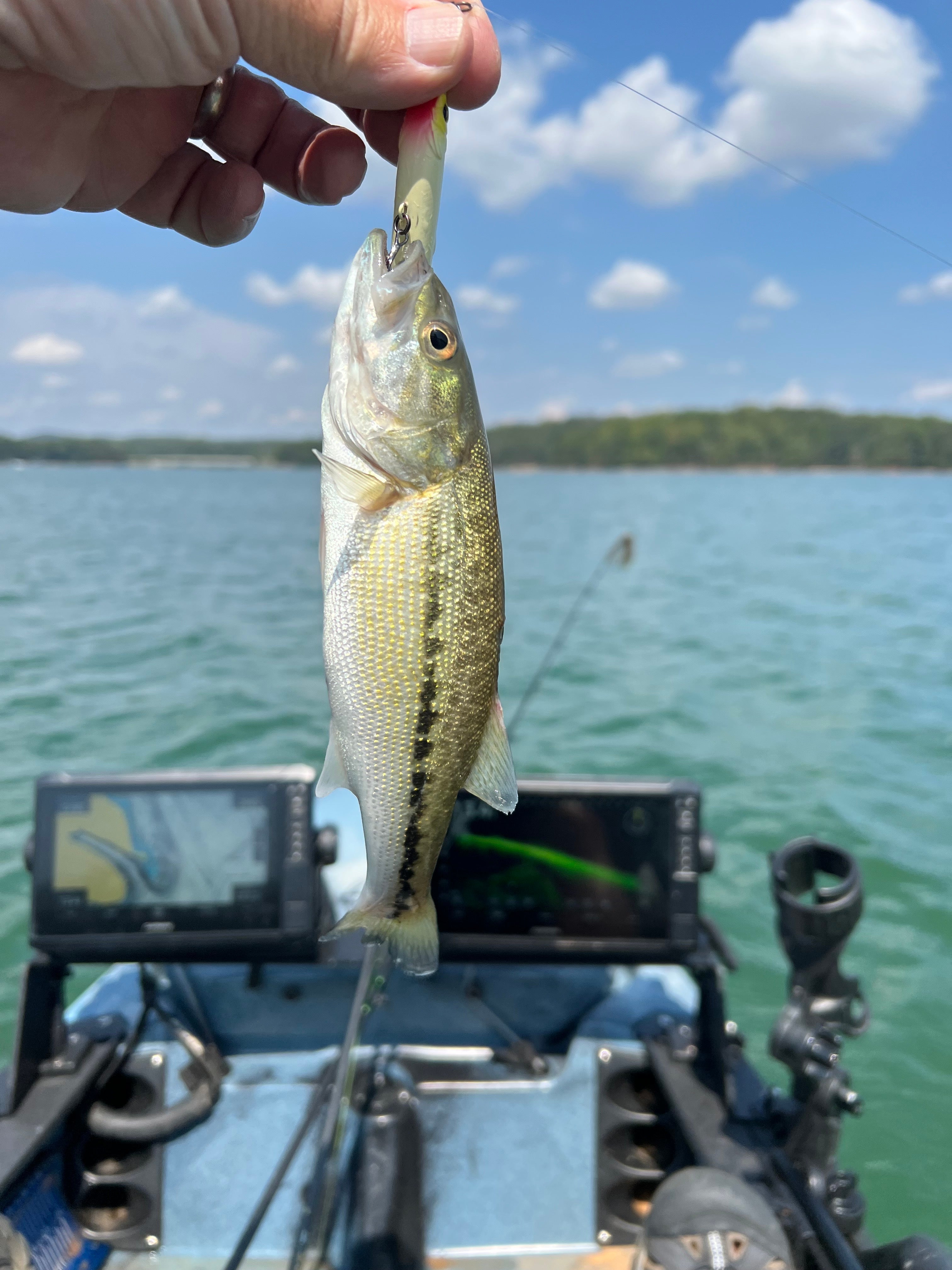A few on top water today in the wind on points. This one on a drop shot off a rocky point